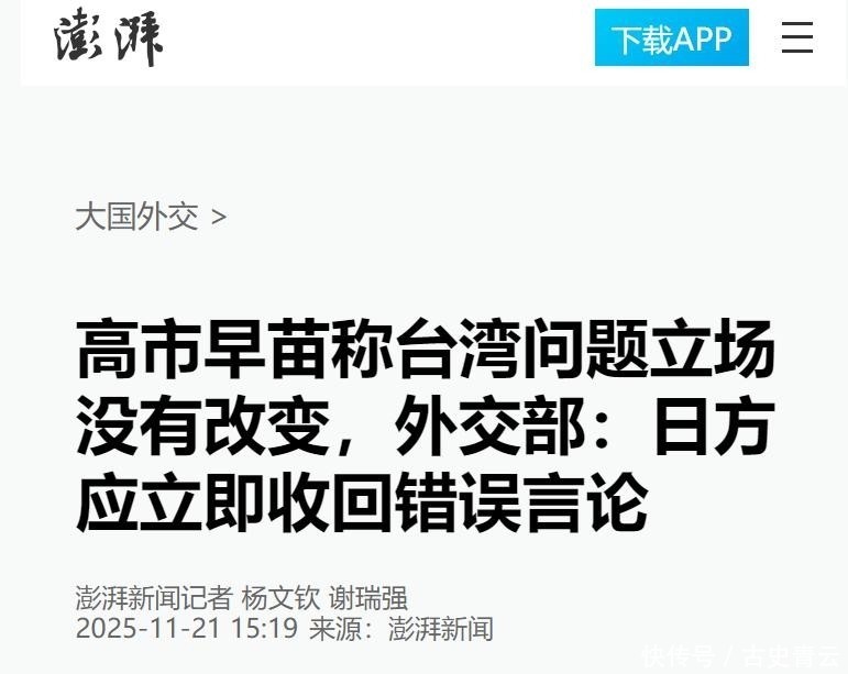 沉天后,高市对中方的第一句话:不是道歉,而是对台立场不变